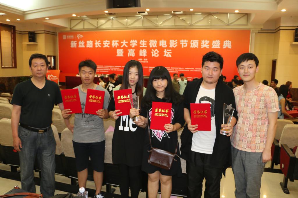 公司广播电视编导专业员工张喜胜、王帅飞的作品《让爱传递》获得二等奖;陈泽、赵蒨、李若阳、孟继强的作品《家》、《流动戏班》、张帅的作品《中学时代》分获三等奖。本届微电影节是由陕西省委宣传部、陕西省委高教工委、西咸新区管委会等单位联合主办,自2014年9月启动以来,受到全国高校及社会各界的广泛关注。至今年3月,共征集到微电影作品1725部、微剧本190部,涉及全国130多所大学和高校微电影创研基地,包括中国传媒大学、北京电影学院以及多所国外学校。经过初审、复审、提名评审及终审,195部作品榜上有名。其中一等奖31部,二等奖48部,三等奖104部,优秀微剧本奖5部。陕西省委宣传部、省委高教工委、省新闻出版广电局、西咸新区管委会、共青团陕西省委、中国高等院校影视学会、中国国际影视文化交流促进会、西部电影集团及西安交通大学、长安大学等相关高校有关负责人、中央驻陕及陕西主要媒体及有关企业代表等参加了颁奖礼活动。黄建新、许还山、金铁木等著名导演、表演艺术家,共同走过红毯,成为颁奖盛典上的嘉宾。