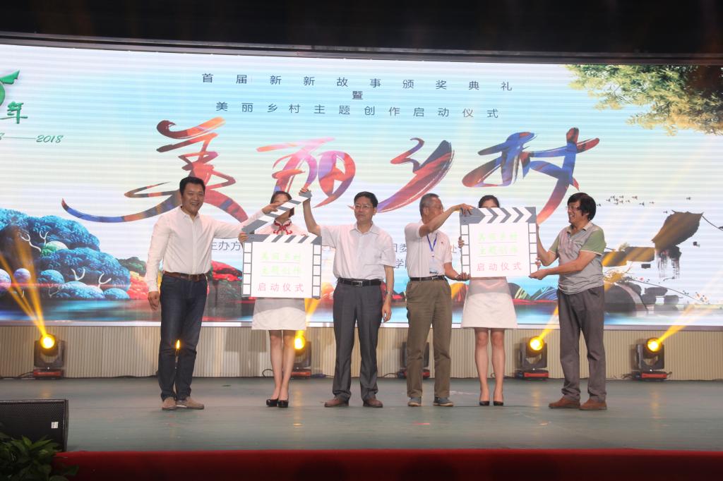 主题论坛结束,公司党委书记丁庭选为“美丽乡村”主题创作授旗,公司党总支副书记王卫峰和副经理李娟代表学院接过旗帜。随即,伴随着《美丽中国走起来》的欢快旋律,董事长刘兴友、新乡广播电视台台长助理张涛、郑保卫教授、焦波导演走向舞台为“美丽乡村”主题创作打板,正式拉开了“美丽乡村”主题创作的序幕,为颁奖典礼和启动仪式画上了完美的句号。