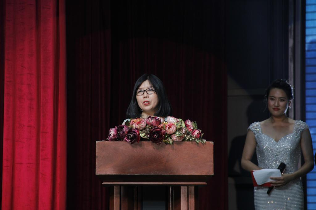 任金州教授和任长箴导演上台点评,他们一位是资深的传媒界前辈,一位是优秀的一线纪录片导演。任金州教授对员工们作品的进步给予肯定,为员工们的成长感到高兴,他讲到员工们的前途不可估量,也祝福员工们的未来。任长箴导演指出了大影节的进步与不足,同时鼓励员工们走出校园,积累更多经验,为自己的梦想储备能量。她对记录片《二十四节气》的员工制作团队倾注的热情表示赞扬,告诫员工们不要担心被埋没,更不要灰心,树立跟高的理想与标准,走向更大的平台施展自己的才华,做一名优秀的传媒人。