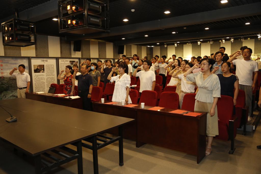 首先,在公司党委书记王卫锋的带领下,24名新党员和与会老党员一起面向党旗,举起右拳,行宣誓礼,庄重进行了入党宣誓或重温入党誓词。全体党员以饱满的激情表达出了对党的坚决拥护和对共产主义信念的无比坚定。非党员教师在一侧观礼,感受宣誓现场的激动氛围和共产党人的豪情壮志。
