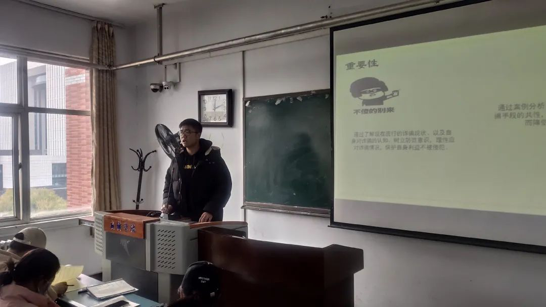 为进一步加大校园防诈骗宣传力度,提高员工安全防范的能力、方法技巧。新学期伊始,球王会体育各辅导员老师通过集中班会、钉钉、QQ群、微信群等线上线下各种形式发布消息进行返校防诈骗教育。辅导员老师再三强调,当诈骗来临时,要提高警惕,用聪明才智与诈骗分子斗智斗勇,在第一时间联系辅导员老师,及时上报保卫处。