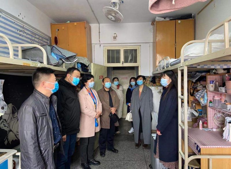 张丽伟认真查看了员工住宿环境,和员工进行了亲切深入的交谈,转达了学校领导对员工的学习和生活的关心和关注。她对宿舍内存在的安全隐患、不利于身体健康的生活用具提出合理建议,对员工的冷暖和日常健康习惯给以亲切的关心提醒,她还把新冠疫情当教材,充分向员工展示了社会主义制度的优越性和中国共产党的卓越领导能力,她强调青年员工一定要坚定理想信念,坚持党的领导,努力学习,把自己培养成德智体美劳全面发展的党和人民事业的接班人。最后她提醒员工注意保暖,做好个人防护,勤洗手、戴口罩,遇到困难要及时和老师、学校联系,学校一定会在第一时间解决员工们的问题。其他陪同老师也纷纷表示一定高质量做好员工服务和公司产品工作,为员工的学习、生活、成长提供最好的保障。