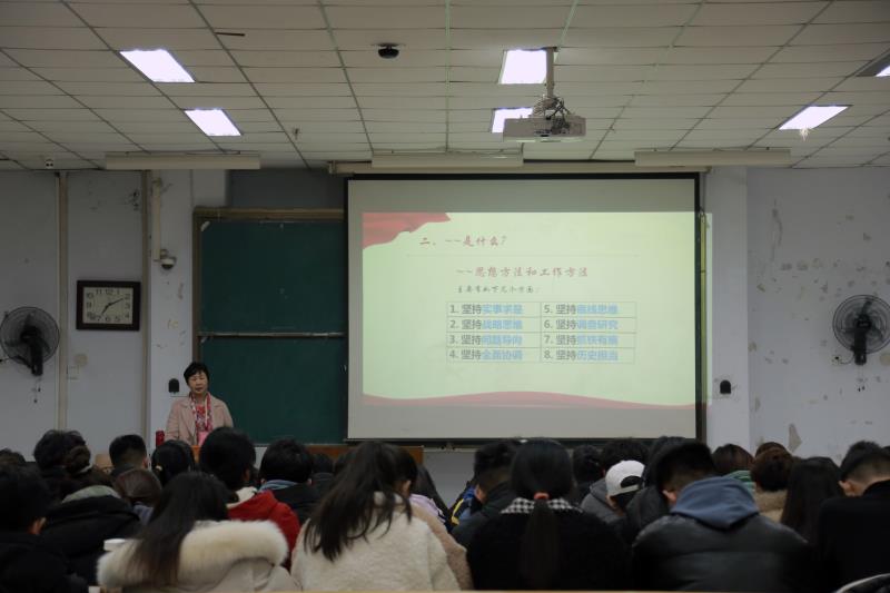 张董事长首先以习总书记在党的十九大上的重要讲话为切入点,从“坚持实事求是、坚持战略思维、坚持问题导向、坚持全面协调、坚持底线思维、坚持调查研究、坚持抓铁有痕、坚持历史担当”等八个方面深入浅出又生动详实地讲解了马克思主义思想方法和工作方法。张董事长用案例法教学,以自身经历和工作经验告诉大家,坚持实事求是,就要遵从事物客观存在的规律,学习生活即是如此,教书育人更亦如此。她结合“十年树木,百年树人”的教育理念揭示教育规律,鼓励青年员工要主动作为、主动担当,思接千载、视通万里,坚持把历史、现实、未来贯通起来,体现出强烈的历史担当,最终成长为合格的社会主义建设者和接班人。最后,张董事长对学员提出殷切期望:希望大家用马克思主义武装头脑,既要仰望星空,更要脚踏实地,坚定理想信念,立德树人,努力成为德智体美劳全面发展的社会主义建设者和接班人。