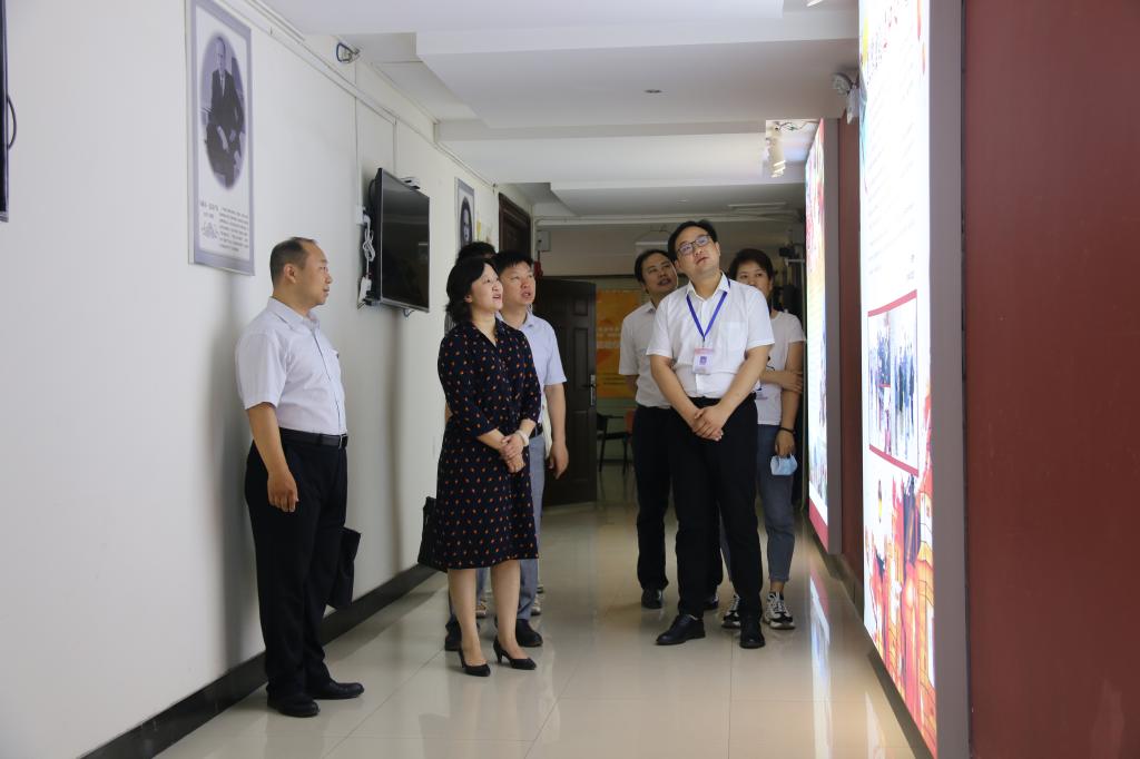 夏董事长一行首先听取了传媒中心王融化、段筱、张夏等老师对“大美学工”视频创作的情况介绍,参观了现代传媒教学实验中心,并在审片室观看了抗“疫”题材的员工毕业作品。马东俊详细汇报了公司的“369”教学育人架构、三维团队培养方向、三农传播中的科研创新、全程仿真智媒体实践平台作用等情况,王卫锋就加强思想政治引领、加强制度建设、确保安全稳定、“创新引飞”三全育人工程等方面作了全面汇报。